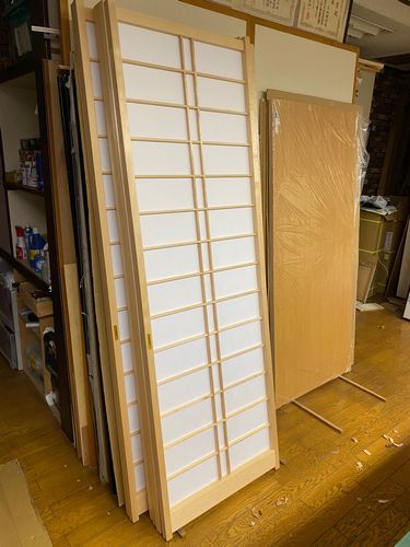 米ヒバ障子に立て合わせ後白木ワックスを塗りました