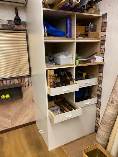脱衣洗面所に棚、ドライヤー掛けを作りました